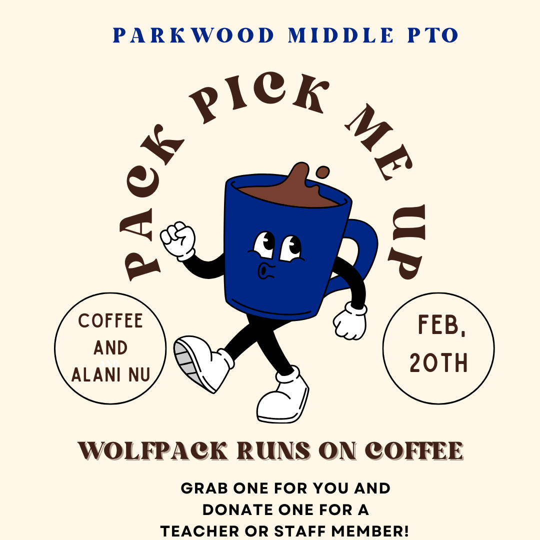Sponsor a teacher or staff member with a coffee or Alani Nu as a small thank-you for all they do. Your gesture helps fuel our Wolfpack and brighten their day! Their drinks will be delivered to the teachers/staff members after morning car rider line on February 20th.